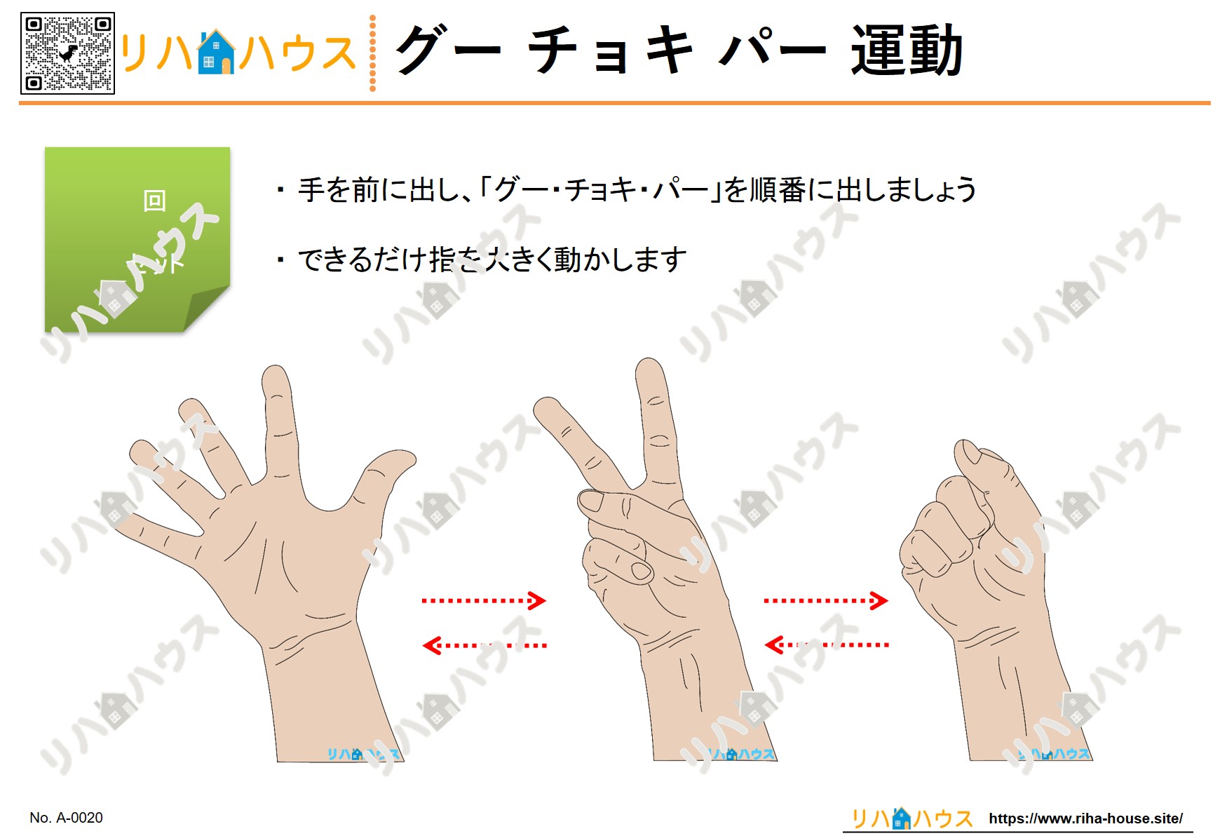 今回はリハハウスより、手指の「グー → チョキ → パー」を順番に出していく自主トレーニングをわかりやすく示した無料プリント素材をご紹介します。イラストで動作が視覚化されているため、