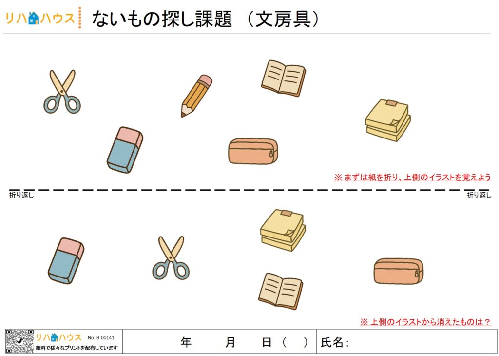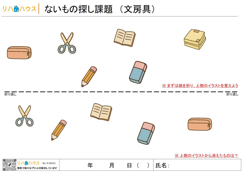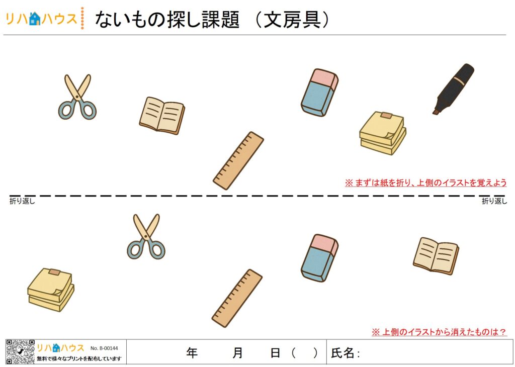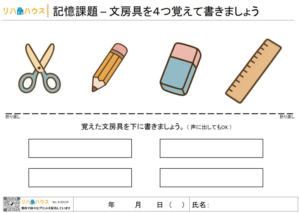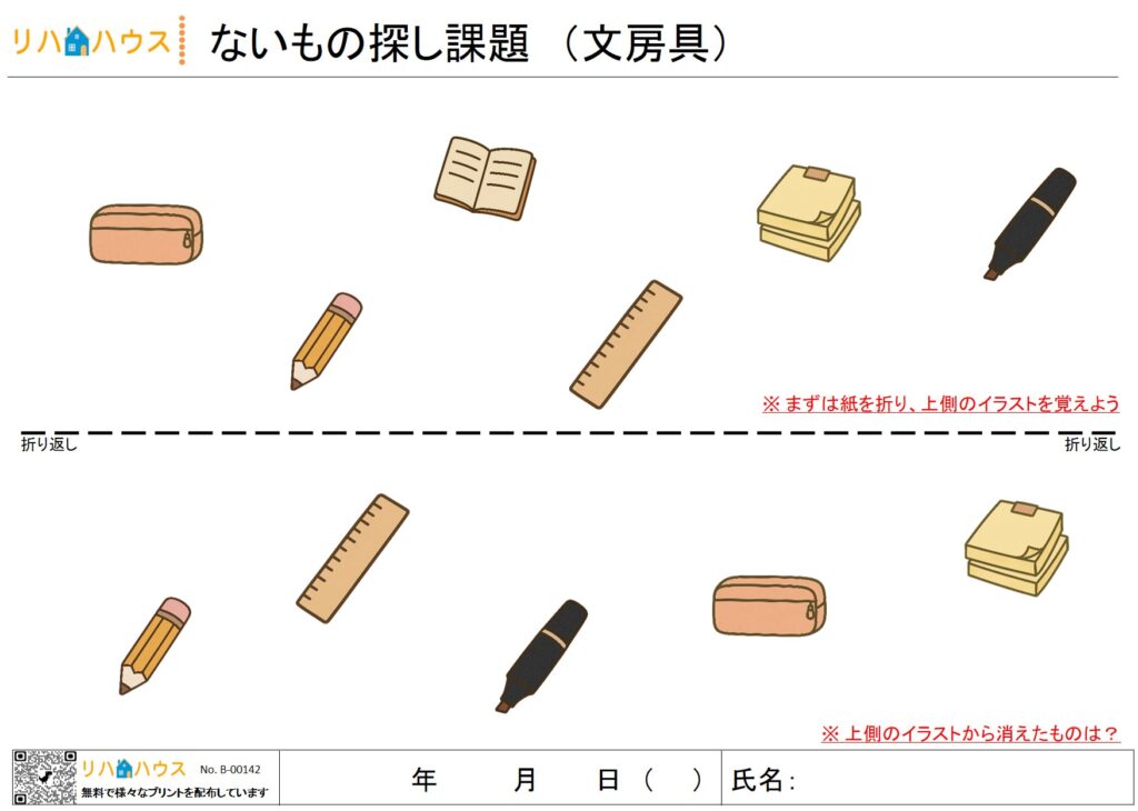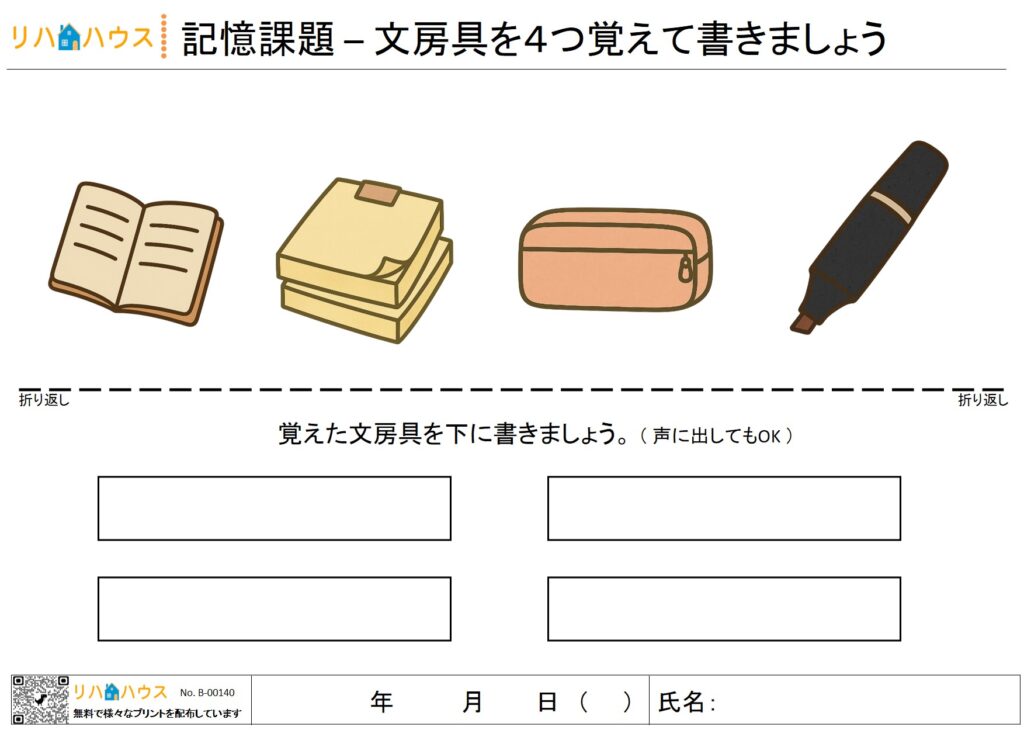 記憶課題 2025 11/15 高次脳機能 2025年5月22日2025年11月15日 画像をクリックするとダウンロードページに移行します 数字と記号の対応関係 数字と記号の記憶(5つ) 問題 回答 イラストの記憶 イラストの記憶(4つ) ないもの探し 高次脳機能 よかったらシェアしてね! URLをコピーする URLをコピーしました! URLをコピーしました! 【無料ダウンロード】1ヵ月分の自主トレチェック表 2025年5月分|リハビリ指導に使える記録用シート 半側空間無視課題 関連記事 【無料ダウンロード】2025年12月カレンダー塗り絵プリント|リハビリや自主トレで使えるイラスト教材 2025年11月17日 【無料ダウンロード】言語リハビリ向けなぞり書きプリント|波線をなぞる書字トレーニング【自主トレ用イラスト教材】 2025年11月17日 【無料ダウンロード】記憶リハビリイラストプリント|ないもの探しで記憶力を鍛える自主トレ教材 その④ 2025年11月15日 【無料ダウンロード】記憶リハビリイラストプリント|ないもの探しで記憶力を鍛える自主トレ教材 その③ 2025年11月15日 【無料ダウンロード】記憶リハビリイラストプリント|ないもの探しで記憶力を鍛える自主トレ教材 その② 2025年11月15日 【無料ダウンロード】記憶リハビリイラストプリント|ないもの探しで記憶力を鍛える自主トレ教材 2025年11月15日 【無料ダウンロード】記憶リハビリプリント|文房具イラストを覚えて思い出す記憶トレーニング その②【自主トレ向け】 2025年11月15日 【無料ダウンロード】記憶リハビリプリント|文房具イラストを覚えて思い出す記憶トレーニング【自主トレ向け】 2025年11月15日